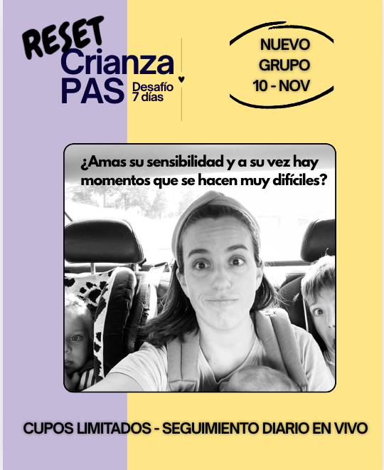 El Desafío Crianza PAS es un RESETEO de 7 días para madres y padres de niños altamente sensibles. Cada día tendrás ejercicios prácticos, videos, guías descargables y acompañamiento en vivo conmigo en un foro de preguntas y respuestas. En una semana vas a ganar claridad, confianza y herramientas para poner límites firmes y amorosos, con coherencia y calma en tu crianza.